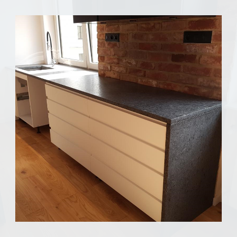 • Granit – materiał uznawany powszechnie za jeden z najtwardszych i najbardziej odpornych na eksploatację naturalnych kamieni. Jego struktura jest mocno zwarta oraz posiada wzmocnioną ochronę przed uszkodzeniami mechanicznymi, zarysowaniami, intensywnym ciepłem oraz kwasami.